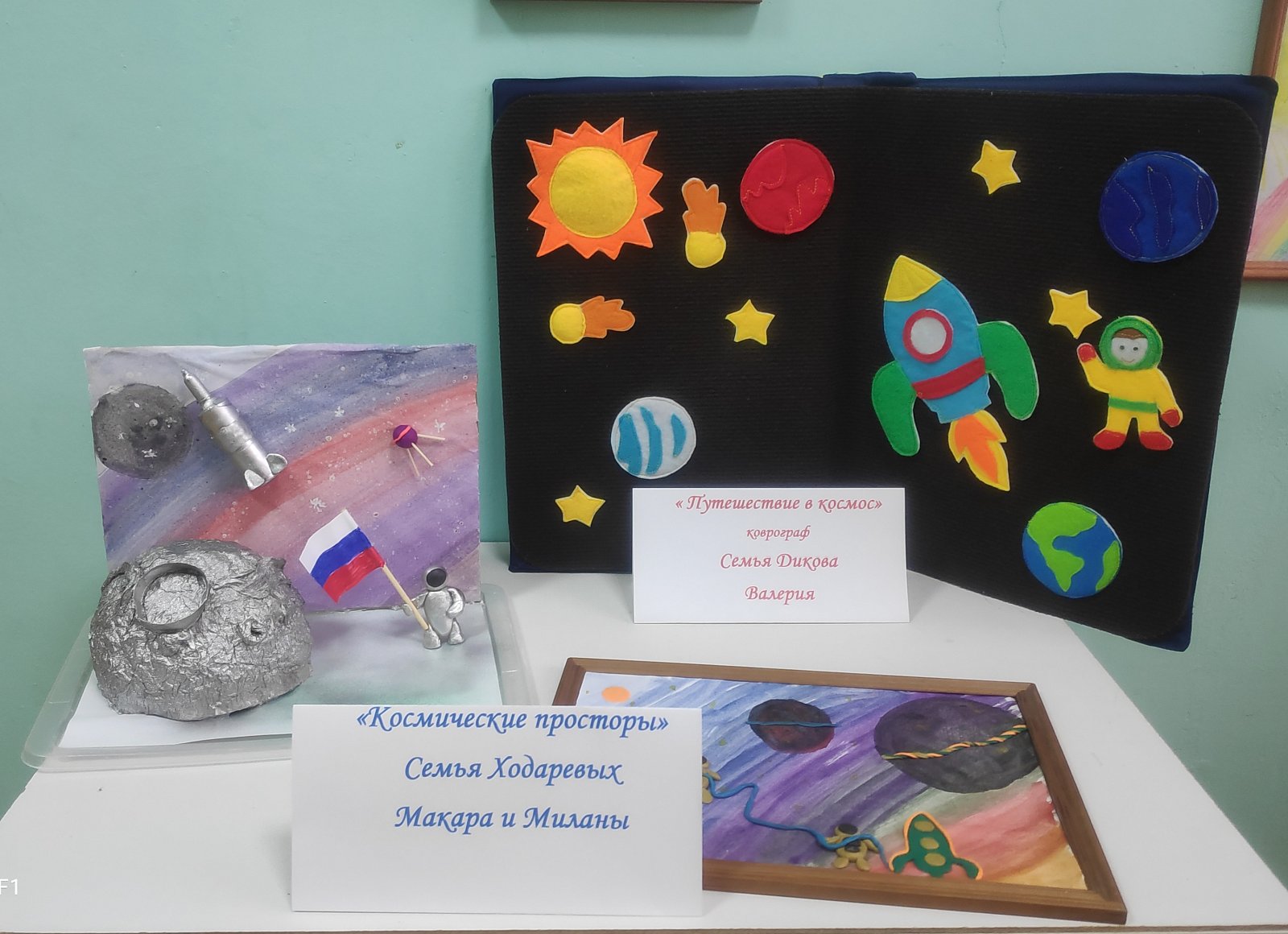 12 апреля 2022 года в детском саду была организована выставка, посвященная Дню космонавтики. Семьи групп № 2 и № 3 особенно постарались, проявив творчество и фантазию, изготовив различные макеты, аппликации и игровые материалы. Выставка расположилась в гостиной и воспитанники всех групп проявили большой интерес, побывав там с экскурсиями.