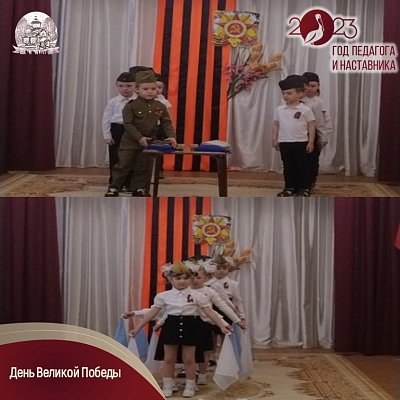 В этом году праздник Победы под названием «Поклонимся великим тем годам» в МБДОУ № 35 начался с парада групп. Воспитанники нарядно одетые, с георгиевской лентой на груди, гордо маршировали. Девочки старшей группы, исполнили танец «Гляжу в озёра синие…», воспитанники средней группы соревновались в эстафете «Собери посылку на фронт», всем залом вместе со взрослыми дружно пели песню «Катюша», детям рассказали о военных событиях, о Коврове - городе Воинской славы, выпускница детского сада Лиза Мухина исполнила песню, в заключении дети под песню «День Победы» торжественным строем вышли из зала.