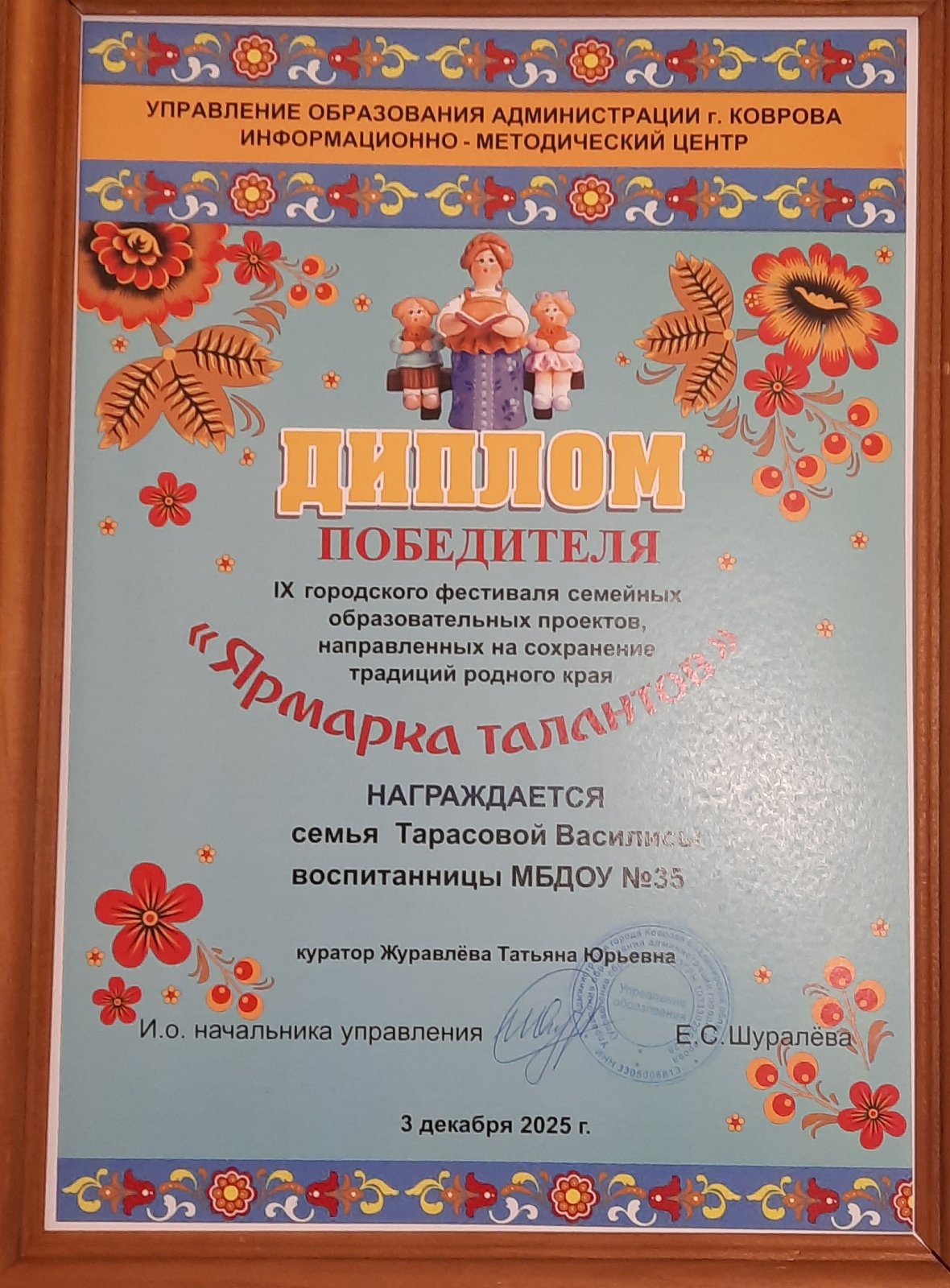 Семья Тарасовой Василисы представляла семейный проект "Есть идея". Поздравляем!
